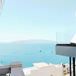 Shenaから歩いてわずか5分の場所に位置する海辺の寝室1室のSunny View Apartment Sarandëからは、海の景色を眺めることができます。 ビジネスとレジャーの両方の目的でWi-Fiを利用できます。